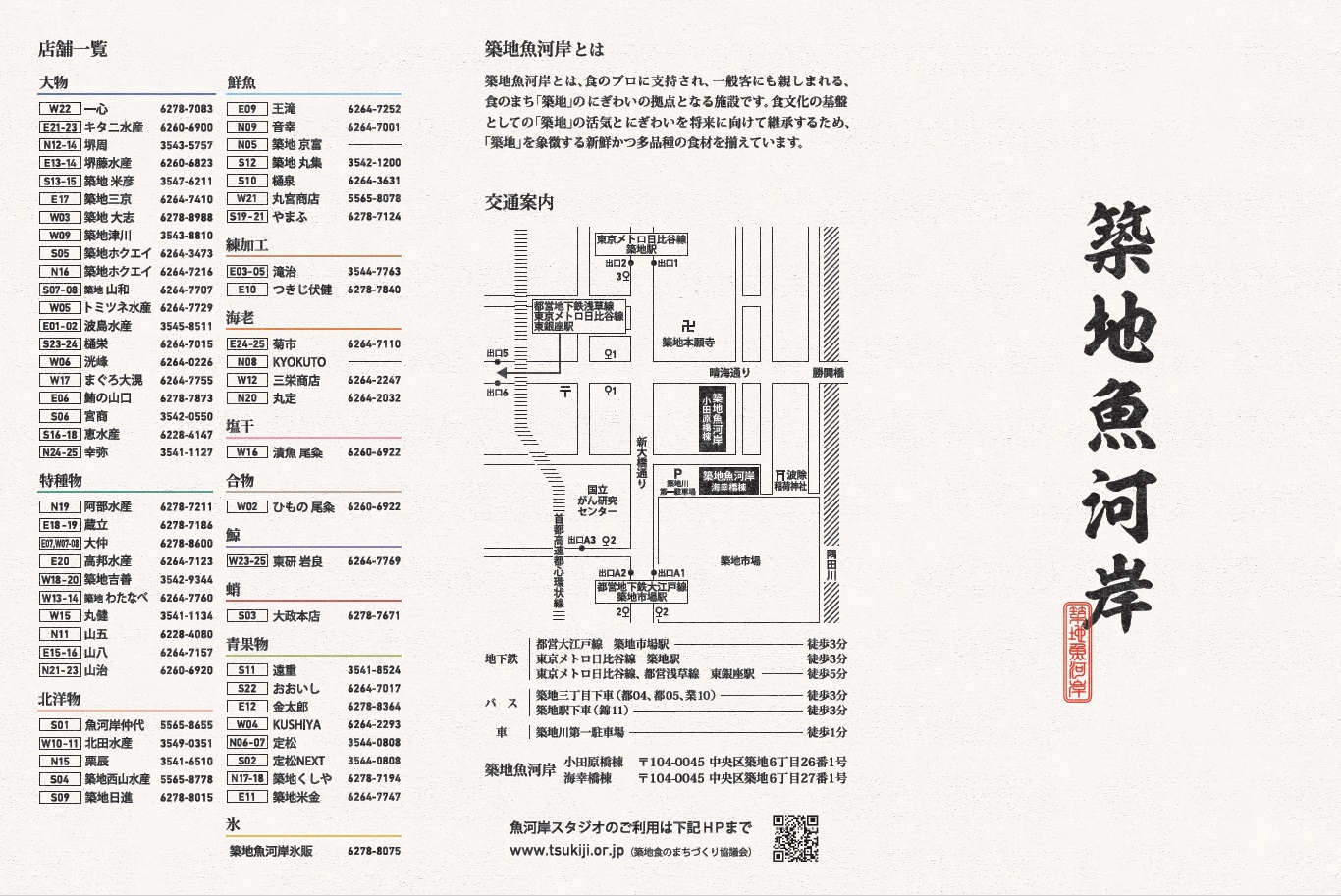 「築地魚河岸」施設パンフレット(店舗案内)
